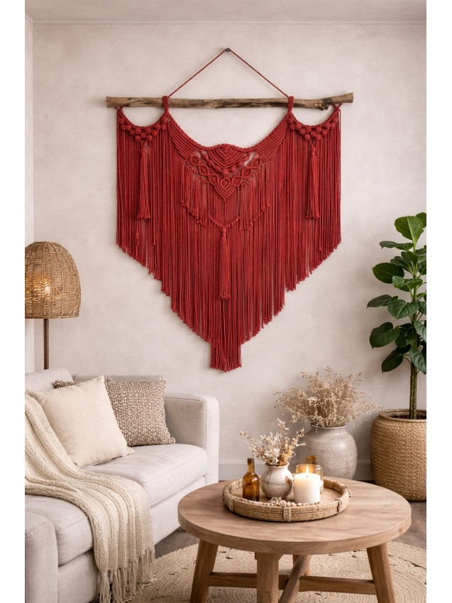 Een opvallend en stijlvol macramé wandkleed dat uw interieur compleet maakt.